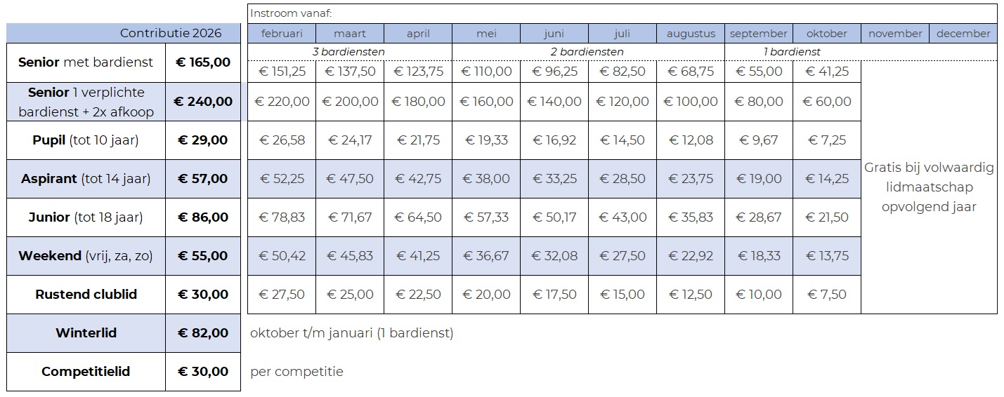 *** Word je tijdens het seizoen lid, dan wordt de contributie verrekend met de resterende maanden.